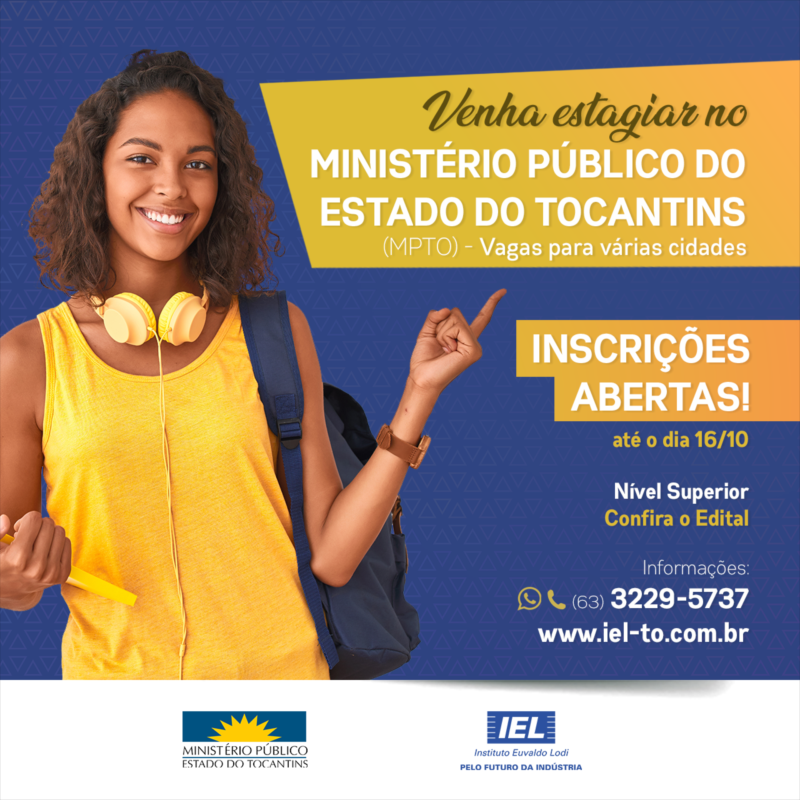 O Ministério Público do Tocantins (MPTO) abriu processo seletivo para 46 vagas de estágio, além de formação de cadastro de reserva nas 41 comarcas judiciais do Estado. Existe previsão de vagas para candidatos deficientes e para os que se autodeclararem negros. A realização do processo seletivo será conduzida pelo Instituto Euvaldo Lodi (IEL).