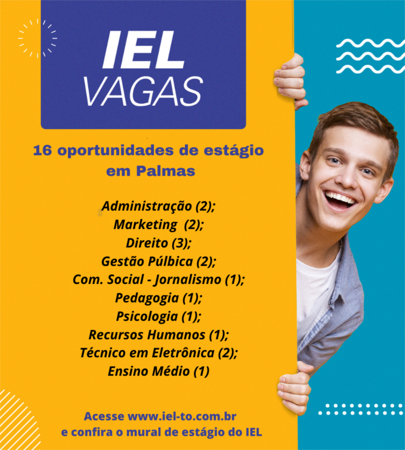 Mais informações sobre as vagas também ser obtidas por meio do telefone do IEL (63) 3229-5730 (Fixo e WhatsApp).